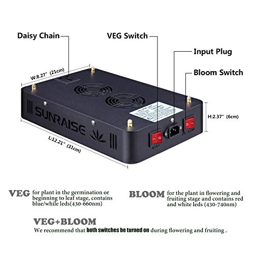 【VEG & BLOOM 】 Two Seperately Switches: VEG for seedling growth, Bloom for fruit and flowers. Veg/Bloom features a more Red/blue heavy output to deliver maximum performance from seedling through final flower.