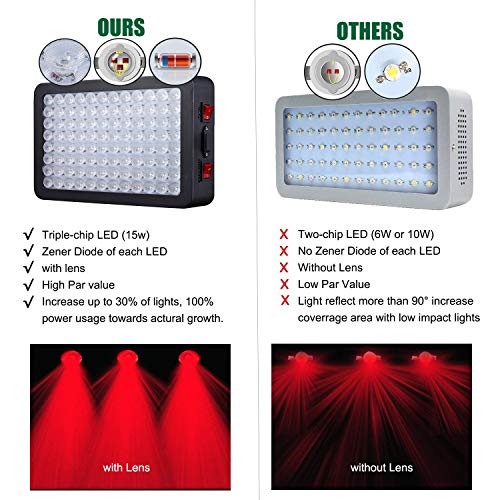 【Triple Chip LEDs】We used 15w Triple-Chip LEDs to make much brighter lights with improved PAR value. There are 96 Zener Diodes – each LED has one Zener Diode.