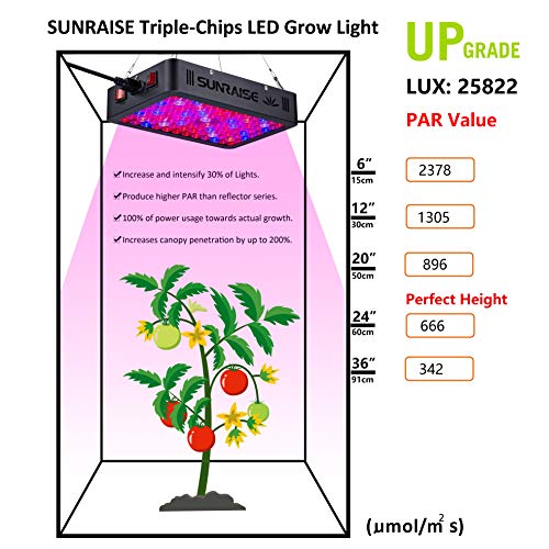 【Lens Technology】 SUNRAISE Full Spectrum LED Grow Light S-1000 combines optical lens technology (superior to reflector lenses) to increase light by 30% with higher PAR values than any other brand in the market.