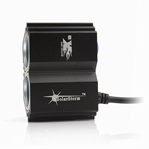 Features: – Brightness: 8000 lumens. – Bulbs: 2 x Cree XM-L T6 LED. – Lifespan: 50,000 hours. – Lighting Distance: 200m-300m. Model: Solar Storm 4 Switch Modes: Low/Middle/High/Strobe. Power Source: 5V Connect with power bank by USB Charging Time: 4.5 hours. Runtime: Up to 2-3 hours(high mode). Material: Aluminum Alloy. Waterproof level: IPX-7. Charger Input: 100V-240V,50/60Hz.