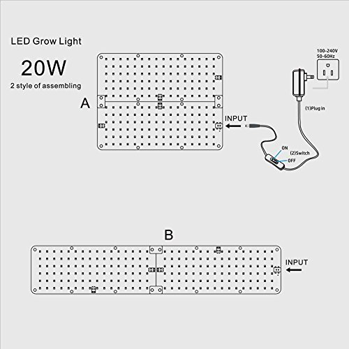 EASY ASSEMBLING GROW LIGHT FIXTURE-ultrathin aluminum printed circuit board that is easy to assemble to strip panel plants light or square grow light panel by means of joint pins. Remark: 2 grow lights panels should be assembled together before switch on. Attached zip ties for hanging installation, double coated tissue tape for easy stick to any plain surface or shelf. Good choice for you DIY greenhouse, hydroponic system and indoor gardening.