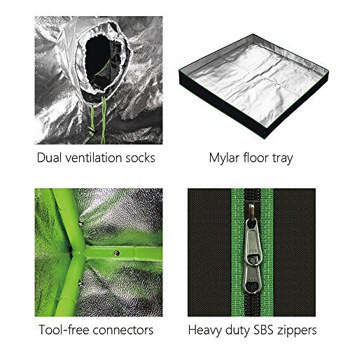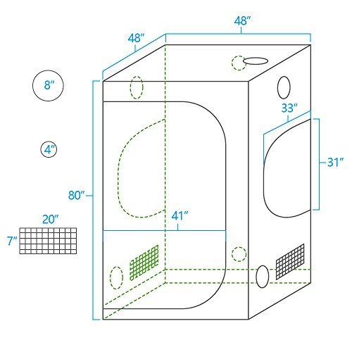 grow tentMulti-Purpose: 48″x48″x80″ grow tent for indoor plant growing in a small apartment or house. Great enclosure allows proper light, humidity and temperature for sprouting seedlings, sexing plants and flowering. Perfect for tomato plants, pepper, cilantro, vegetable lettuce, cigarettes smell plant, herbal cannabis, medical marijuana, herbs.