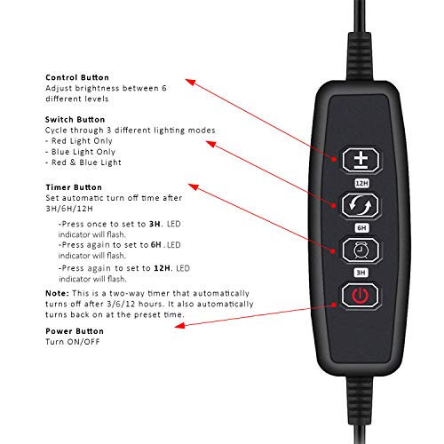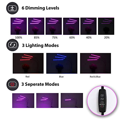DIMMABLE AND LIGHTING MODES – Jump start your plants’ growth indoors with the plant light for indoor house plants. It comes with 6 Dimmable Levels of brightness, which can be adjusted accordingly, depending on the needs of the plant. The lighting modes allow you to switch between red light only and blue light only, or have both lights on. Additionally, the Grow Light has three sets of arms. Pressing a button conveniently switches between turning on the lights for arm 1, 2, and 3.