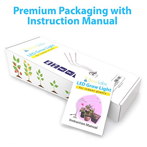 Brite Labs LED Grow Lights for Indoor Plants and Seedlings, Triple Head Plant Growing Lamps with 60 Full Spectrum Bulbs, Programmable Timer Allows Auto On Off, Adjustable Gooseneck with Desk Clip On