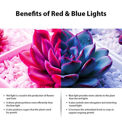 60 FULL SPECTRUM LEDS – With 39 Red and 21 Blue LEDs on 3 bars, the portable mini growlight kit offers better coverage. Start organic seeds of leek, english cucumber, watermelon, basil herb and more. Whether in the home garden or commercial greenhouse, it replicates the natural solar spectrum to help plants in all stages of growth. It also features a powerful combination of red and blue lights. While the blue light is needed by plants for photosynthesis, the red light triggers flowering.