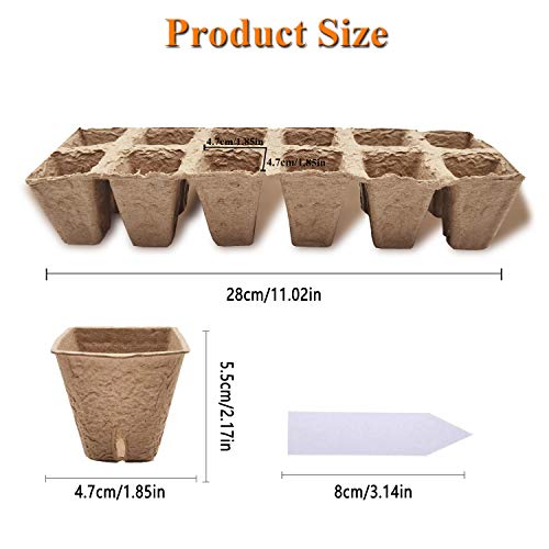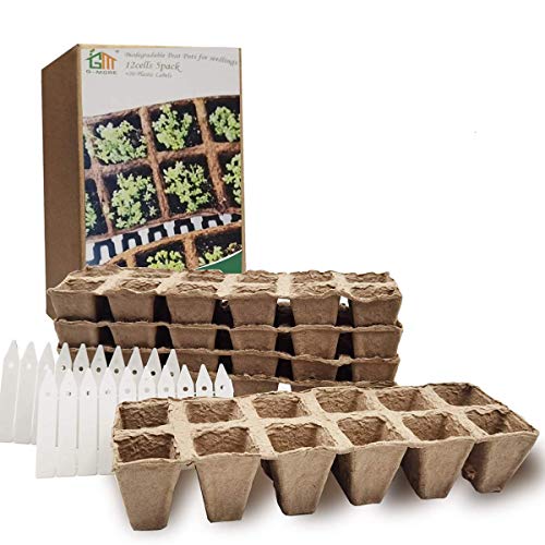 G-More Seed Starter Tray 100% Biodegradable Peat Pots Kit for Seedling Germination Seedling Trays |5 Trays- 60 Cells |20 Plastic Plant Markers