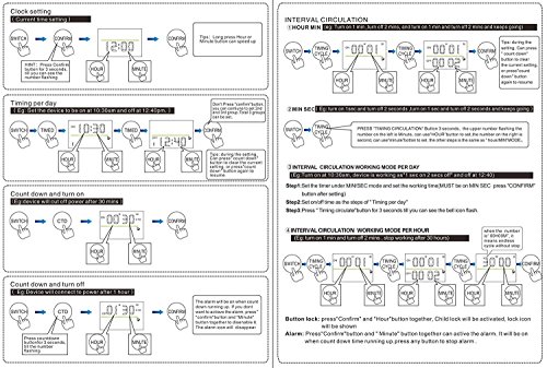 This outlet timer is also applicable to charging, turning sprinkler irrigation, lamps, fans, christmas tree lights and other electrical devices on and off.