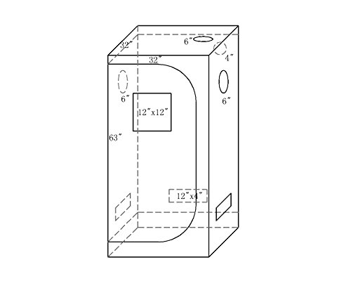 PACKAGE INCLUDES: 1 -Growtent Garden 32″X32″X63″ Grow Tent / 1 – Removable Mylar Floor Tray, 6 Filter Straps Included, 1 – Instructional Pamphlet / 100% Reflective Tear Proof Mylar / Heavy Duty Zippers & Double Stitching for Light Protection.