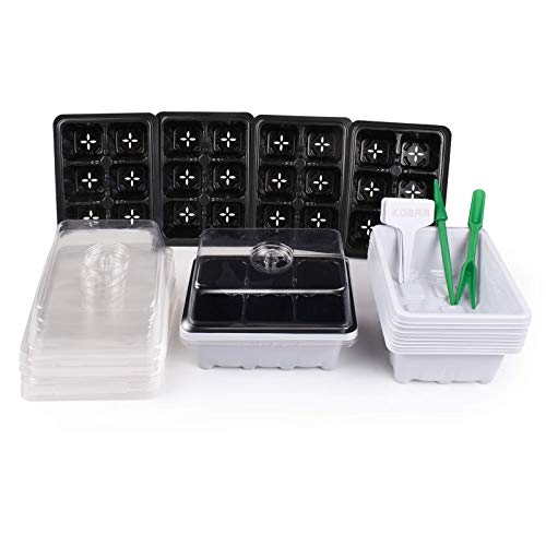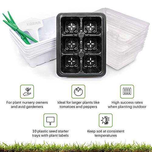 KORAM 10-Pack Seed Starter Trays 60 Large Cells Seedling Tray Plant Grow Kit with Lid and Base for Seed Germination (6-Cell Per Tray)