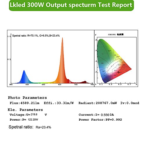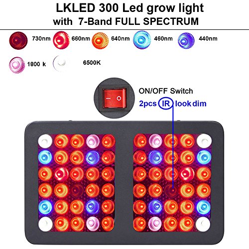 ♣ TRULY FULL SPECTRUM LAYOUT. Lkled 300w grow light designed with 7-band full spectrum including Red,Blue,UV, IR and White, provide all wavelengths that plants needed from the natural sunlight, perfect for all growing phases of plants,seeding, flowering and blooming.