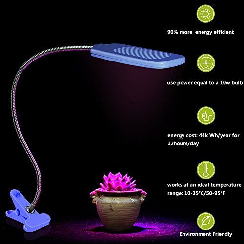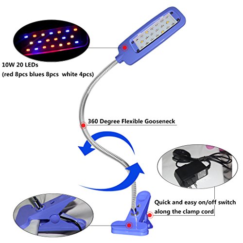 | thcscout | Grow | No Comments on Led Grow Light, fashion&cool 10W Plant Growing Clip Desk Lamp with 360 Degree Flexible Gooseneck for Indoor Plants flowering, Blooming, Greenhouse, Garden, Office, Home – 10W 3 Bands, Blue
