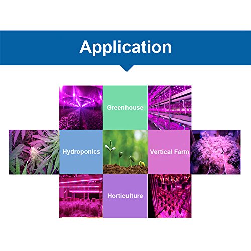 ✔TARGETED SPECTRUM & WIDE APPLICATION. This grow light provides the wavelength that plant required (450nm-465nm 630nm-660nm etc). Widely used to hydroponics, greenhouse, plant factory, vertical farming, urban farming, tissue culture, horticulture, indoor gardening, indoor farming and so on. It is suitable for almost all the plants.