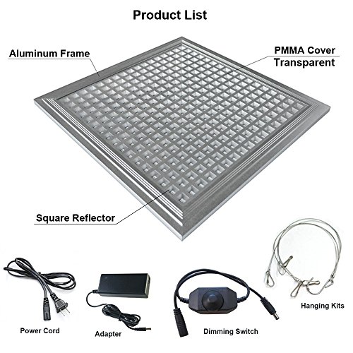 Package Include: 1x led grow light / 1x Adapter / 1x Power cord / 1x Dimmer / 1x Steel hanging kits